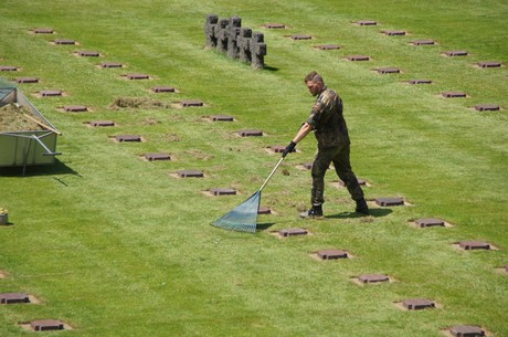 Auf dem größten US-Friedhof gibt es 70.000 Gräber. Auf dem deutschen Friedhof gilt es ca. 70 Hektar umzugraben.